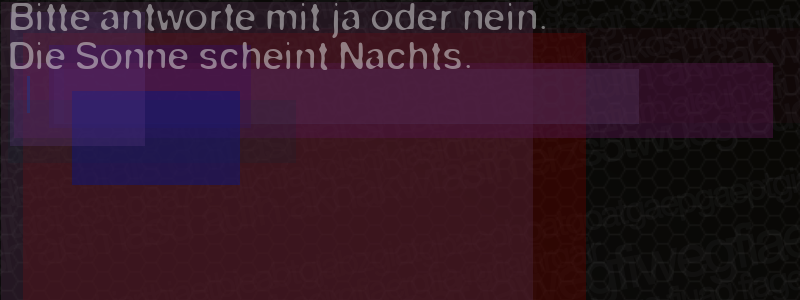 Die Visuelle Bestätigung hilft dabei automatische Spambots und Scripte von den Diensten dieses Forums abzuhalten. Derartige Scripte sind normalerweise nicht in der Lage den untenstehenden Code zu erkennen. Bitte geben Sie also in das untenstehende Feld die Buchstaben und Zahlen ein, die Sie in dem Bild erkennen können oder beantworten Sie die angezeigte Frage.