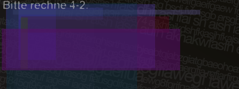 Die Visuelle Bestätigung hilft dabei automatische Spambots und Scripte von den Diensten dieses Forums abzuhalten. Derartige Scripte sind normalerweise nicht in der Lage den untenstehenden Code zu erkennen. Bitte geben Sie also in das untenstehende Feld die Buchstaben und Zahlen ein, die Sie in dem Bild erkennen können oder beantworten Sie die angezeigte Frage.
