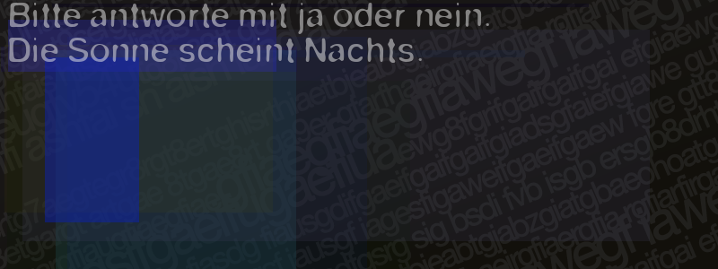 Die Visuelle Bestätigung hilft dabei automatische Spambots und Scripte von den Diensten dieses Forums abzuhalten. Derartige Scripte sind normalerweise nicht in der Lage den untenstehenden Code zu erkennen. Bitte geben Sie also in das untenstehende Feld die Buchstaben und Zahlen ein, die Sie in dem Bild erkennen können oder beantworten Sie die angezeigte Frage.