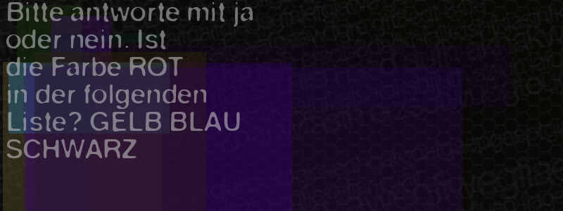 Die Visuelle Bestätigung hilft dabei automatische Spambots und Scripte von den Diensten dieses Forums abzuhalten. Derartige Scripte sind normalerweise nicht in der Lage den untenstehenden Code zu erkennen. Bitte geben Sie also in das untenstehende Feld die Buchstaben und Zahlen ein, die Sie in dem Bild erkennen können oder beantworten Sie die angezeigte Frage.