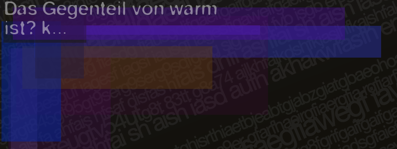 Die Visuelle Bestätigung hilft dabei automatische Spambots und Scripte von den Diensten dieses Forums abzuhalten. Derartige Scripte sind normalerweise nicht in der Lage den untenstehenden Code zu erkennen. Bitte geben Sie also in das untenstehende Feld die Buchstaben und Zahlen ein, die Sie in dem Bild erkennen können oder beantworten Sie die angezeigte Frage.
