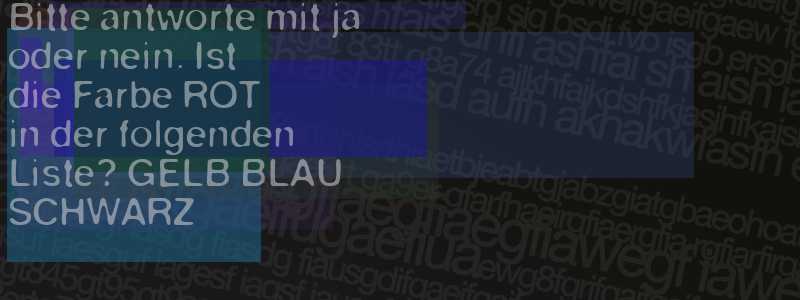 Die Visuelle Bestätigung hilft dabei automatische Spambots und Scripte von den Diensten dieses Forums abzuhalten. Derartige Scripte sind normalerweise nicht in der Lage den untenstehenden Code zu erkennen. Bitte geben Sie also in das untenstehende Feld die Buchstaben und Zahlen ein, die Sie in dem Bild erkennen können oder beantworten Sie die angezeigte Frage.