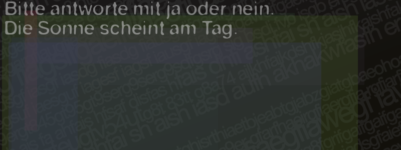 Die Visuelle Bestätigung hilft dabei automatische Spambots und Scripte von den Diensten dieses Forums abzuhalten. Derartige Scripte sind normalerweise nicht in der Lage den untenstehenden Code zu erkennen. Bitte geben Sie also in das untenstehende Feld die Buchstaben und Zahlen ein, die Sie in dem Bild erkennen können oder beantworten Sie die angezeigte Frage.