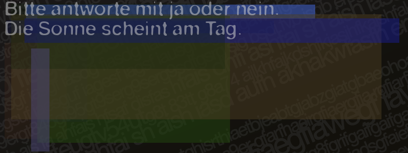 Die Visuelle Bestätigung hilft dabei automatische Spambots und Scripte von den Diensten dieses Forums abzuhalten. Derartige Scripte sind normalerweise nicht in der Lage den untenstehenden Code zu erkennen. Bitte geben Sie also in das untenstehende Feld die Buchstaben und Zahlen ein, die Sie in dem Bild erkennen können oder beantworten Sie die angezeigte Frage.