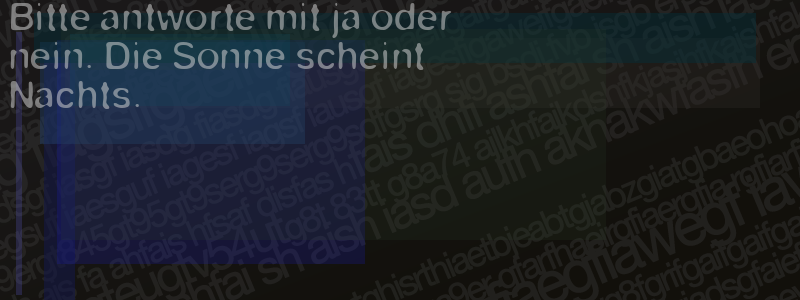 Die Visuelle Bestätigung hilft dabei automatische Spambots und Scripte von den Diensten dieses Forums abzuhalten. Derartige Scripte sind normalerweise nicht in der Lage den untenstehenden Code zu erkennen. Bitte geben Sie also in das untenstehende Feld die Buchstaben und Zahlen ein, die Sie in dem Bild erkennen können oder beantworten Sie die angezeigte Frage.