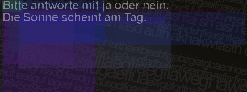 Die Visuelle Bestätigung hilft dabei automatische Spambots und Scripte von den Diensten dieses Forums abzuhalten. Derartige Scripte sind normalerweise nicht in der Lage den untenstehenden Code zu erkennen. Bitte geben Sie also in das untenstehende Feld die Buchstaben und Zahlen ein, die Sie in dem Bild erkennen können oder beantworten Sie die angezeigte Frage.