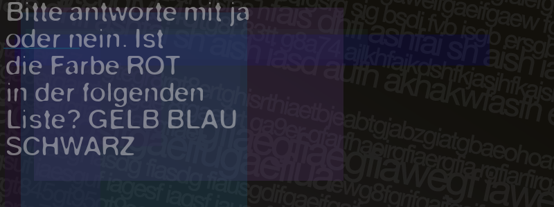Die Visuelle Bestätigung hilft dabei automatische Spambots und Scripte von den Diensten dieses Forums abzuhalten. Derartige Scripte sind normalerweise nicht in der Lage den untenstehenden Code zu erkennen. Bitte geben Sie also in das untenstehende Feld die Buchstaben und Zahlen ein, die Sie in dem Bild erkennen können oder beantworten Sie die angezeigte Frage.