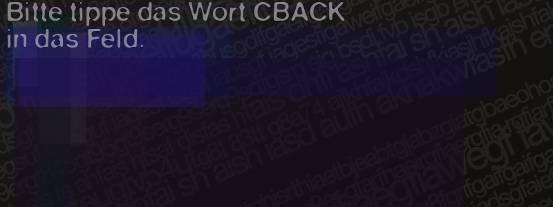 Die Visuelle Bestätigung hilft dabei automatische Spambots und Scripte von den Diensten dieses Forums abzuhalten. Derartige Scripte sind normalerweise nicht in der Lage den untenstehenden Code zu erkennen. Bitte geben Sie also in das untenstehende Feld die Buchstaben und Zahlen ein, die Sie in dem Bild erkennen können oder beantworten Sie die angezeigte Frage.