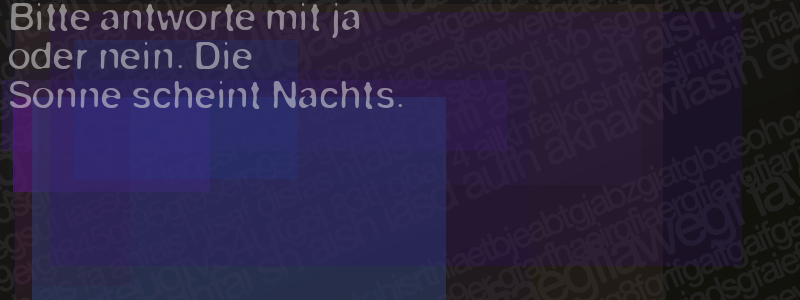 Die Visuelle Bestätigung hilft dabei automatische Spambots und Scripte von den Diensten dieses Forums abzuhalten. Derartige Scripte sind normalerweise nicht in der Lage den untenstehenden Code zu erkennen. Bitte geben Sie also in das untenstehende Feld die Buchstaben und Zahlen ein, die Sie in dem Bild erkennen können oder beantworten Sie die angezeigte Frage.