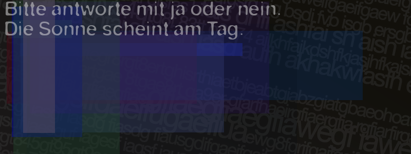 Die Visuelle Bestätigung hilft dabei automatische Spambots und Scripte von den Diensten dieses Forums abzuhalten. Derartige Scripte sind normalerweise nicht in der Lage den untenstehenden Code zu erkennen. Bitte geben Sie also in das untenstehende Feld die Buchstaben und Zahlen ein, die Sie in dem Bild erkennen können oder beantworten Sie die angezeigte Frage.