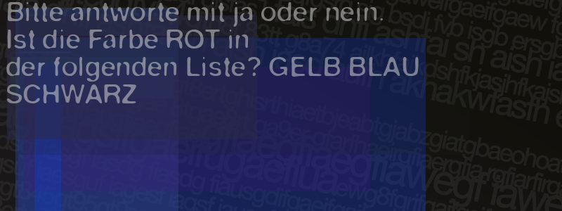 Die Visuelle Bestätigung hilft dabei automatische Spambots und Scripte von den Diensten dieses Forums abzuhalten. Derartige Scripte sind normalerweise nicht in der Lage den untenstehenden Code zu erkennen. Bitte geben Sie also in das untenstehende Feld die Buchstaben und Zahlen ein, die Sie in dem Bild erkennen können oder beantworten Sie die angezeigte Frage.