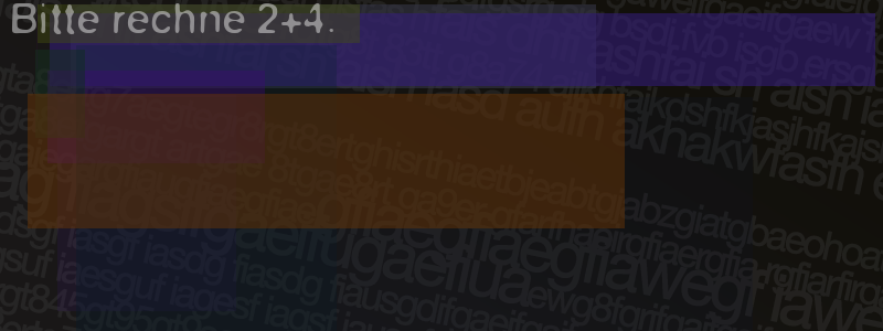 Die Visuelle Bestätigung hilft dabei automatische Spambots und Scripte von den Diensten dieses Forums abzuhalten. Derartige Scripte sind normalerweise nicht in der Lage den untenstehenden Code zu erkennen. Bitte geben Sie also in das untenstehende Feld die Buchstaben und Zahlen ein, die Sie in dem Bild erkennen können oder beantworten Sie die angezeigte Frage.