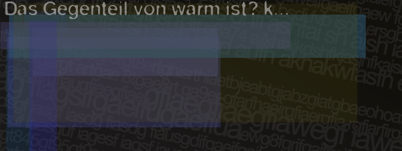 Die Visuelle Bestätigung hilft dabei automatische Spambots und Scripte von den Diensten dieses Forums abzuhalten. Derartige Scripte sind normalerweise nicht in der Lage den untenstehenden Code zu erkennen. Bitte geben Sie also in das untenstehende Feld die Buchstaben und Zahlen ein, die Sie in dem Bild erkennen können oder beantworten Sie die angezeigte Frage.