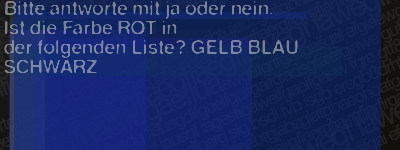 Die Visuelle Bestätigung hilft dabei automatische Spambots und Scripte von den Diensten dieses Forums abzuhalten. Derartige Scripte sind normalerweise nicht in der Lage den untenstehenden Code zu erkennen. Bitte geben Sie also in das untenstehende Feld die Buchstaben und Zahlen ein, die Sie in dem Bild erkennen können oder beantworten Sie die angezeigte Frage.