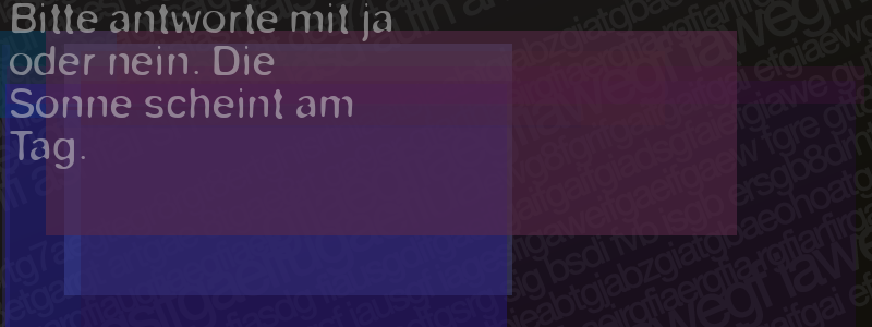 Die Visuelle Bestätigung hilft dabei automatische Spambots und Scripte von den Diensten dieses Forums abzuhalten. Derartige Scripte sind normalerweise nicht in der Lage den untenstehenden Code zu erkennen. Bitte geben Sie also in das untenstehende Feld die Buchstaben und Zahlen ein, die Sie in dem Bild erkennen können oder beantworten Sie die angezeigte Frage.