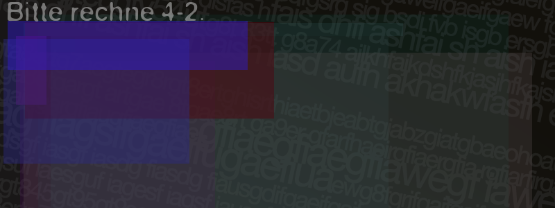 Die Visuelle Bestätigung hilft dabei automatische Spambots und Scripte von den Diensten dieses Forums abzuhalten. Derartige Scripte sind normalerweise nicht in der Lage den untenstehenden Code zu erkennen. Bitte geben Sie also in das untenstehende Feld die Buchstaben und Zahlen ein, die Sie in dem Bild erkennen können oder beantworten Sie die angezeigte Frage.