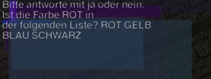 Die Visuelle Bestätigung hilft dabei automatische Spambots und Scripte von den Diensten dieses Forums abzuhalten. Derartige Scripte sind normalerweise nicht in der Lage den untenstehenden Code zu erkennen. Bitte geben Sie also in das untenstehende Feld die Buchstaben und Zahlen ein, die Sie in dem Bild erkennen können oder beantworten Sie die angezeigte Frage.