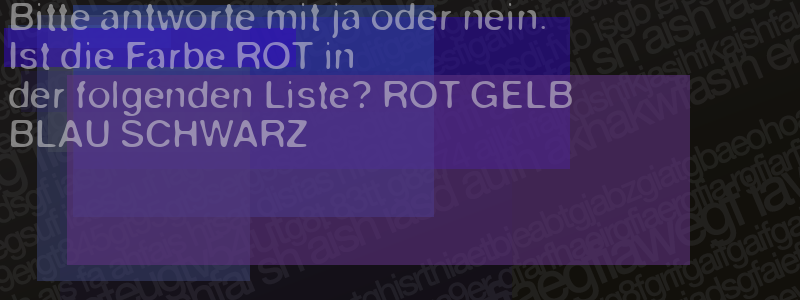 Die Visuelle Bestätigung hilft dabei automatische Spambots und Scripte von den Diensten dieses Forums abzuhalten. Derartige Scripte sind normalerweise nicht in der Lage den untenstehenden Code zu erkennen. Bitte geben Sie also in das untenstehende Feld die Buchstaben und Zahlen ein, die Sie in dem Bild erkennen können oder beantworten Sie die angezeigte Frage.