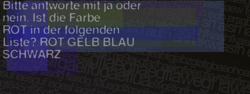 Die Visuelle Bestätigung hilft dabei automatische Spambots und Scripte von den Diensten dieses Forums abzuhalten. Derartige Scripte sind normalerweise nicht in der Lage den untenstehenden Code zu erkennen. Bitte geben Sie also in das untenstehende Feld die Buchstaben und Zahlen ein, die Sie in dem Bild erkennen können oder beantworten Sie die angezeigte Frage.