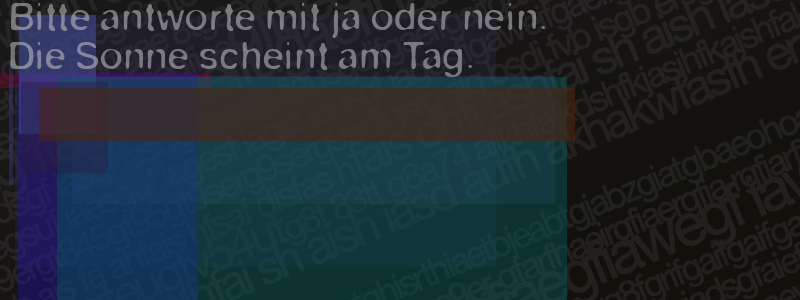 Die Visuelle Bestätigung hilft dabei automatische Spambots und Scripte von den Diensten dieses Forums abzuhalten. Derartige Scripte sind normalerweise nicht in der Lage den untenstehenden Code zu erkennen. Bitte geben Sie also in das untenstehende Feld die Buchstaben und Zahlen ein, die Sie in dem Bild erkennen können oder beantworten Sie die angezeigte Frage.