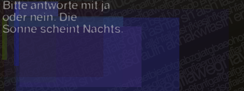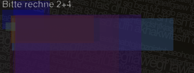Die Visuelle Bestätigung hilft dabei automatische Spambots und Scripte von den Diensten dieses Forums abzuhalten. Derartige Scripte sind normalerweise nicht in der Lage den untenstehenden Code zu erkennen. Bitte geben Sie also in das untenstehende Feld die Buchstaben und Zahlen ein, die Sie in dem Bild erkennen können oder beantworten Sie die angezeigte Frage.