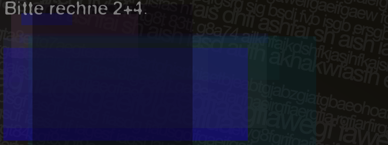 Die Visuelle Bestätigung hilft dabei automatische Spambots und Scripte von den Diensten dieses Forums abzuhalten. Derartige Scripte sind normalerweise nicht in der Lage den untenstehenden Code zu erkennen. Bitte geben Sie also in das untenstehende Feld die Buchstaben und Zahlen ein, die Sie in dem Bild erkennen können oder beantworten Sie die angezeigte Frage.
