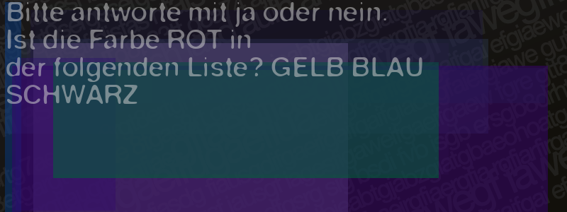 Die Visuelle Bestätigung hilft dabei automatische Spambots und Scripte von den Diensten dieses Forums abzuhalten. Derartige Scripte sind normalerweise nicht in der Lage den untenstehenden Code zu erkennen. Bitte geben Sie also in das untenstehende Feld die Buchstaben und Zahlen ein, die Sie in dem Bild erkennen können oder beantworten Sie die angezeigte Frage.