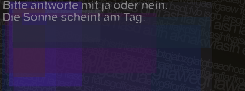Die Visuelle Bestätigung hilft dabei automatische Spambots und Scripte von den Diensten dieses Forums abzuhalten. Derartige Scripte sind normalerweise nicht in der Lage den untenstehenden Code zu erkennen. Bitte geben Sie also in das untenstehende Feld die Buchstaben und Zahlen ein, die Sie in dem Bild erkennen können oder beantworten Sie die angezeigte Frage.
