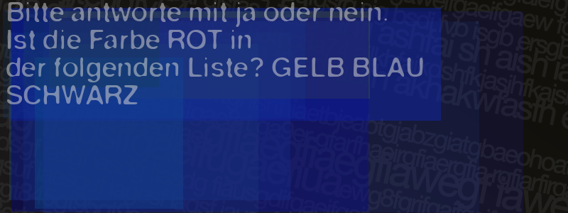 Die Visuelle Bestätigung hilft dabei automatische Spambots und Scripte von den Diensten dieses Forums abzuhalten. Derartige Scripte sind normalerweise nicht in der Lage den untenstehenden Code zu erkennen. Bitte geben Sie also in das untenstehende Feld die Buchstaben und Zahlen ein, die Sie in dem Bild erkennen können oder beantworten Sie die angezeigte Frage.