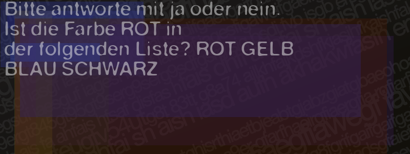 Die Visuelle Bestätigung hilft dabei automatische Spambots und Scripte von den Diensten dieses Forums abzuhalten. Derartige Scripte sind normalerweise nicht in der Lage den untenstehenden Code zu erkennen. Bitte geben Sie also in das untenstehende Feld die Buchstaben und Zahlen ein, die Sie in dem Bild erkennen können oder beantworten Sie die angezeigte Frage.