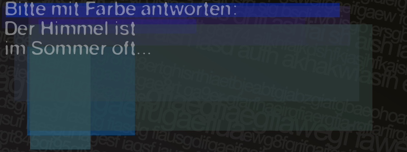 Die Visuelle Bestätigung hilft dabei automatische Spambots und Scripte von den Diensten dieses Forums abzuhalten. Derartige Scripte sind normalerweise nicht in der Lage den untenstehenden Code zu erkennen. Bitte geben Sie also in das untenstehende Feld die Buchstaben und Zahlen ein, die Sie in dem Bild erkennen können oder beantworten Sie die angezeigte Frage.