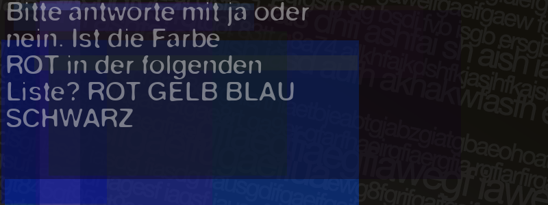 Die Visuelle Bestätigung hilft dabei automatische Spambots und Scripte von den Diensten dieses Forums abzuhalten. Derartige Scripte sind normalerweise nicht in der Lage den untenstehenden Code zu erkennen. Bitte geben Sie also in das untenstehende Feld die Buchstaben und Zahlen ein, die Sie in dem Bild erkennen können oder beantworten Sie die angezeigte Frage.