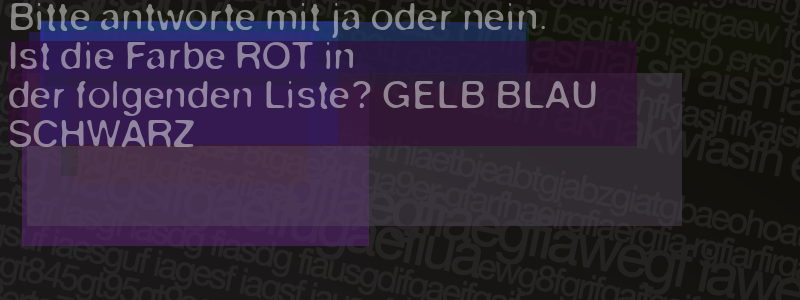 Die Visuelle Bestätigung hilft dabei automatische Spambots und Scripte von den Diensten dieses Forums abzuhalten. Derartige Scripte sind normalerweise nicht in der Lage den untenstehenden Code zu erkennen. Bitte geben Sie also in das untenstehende Feld die Buchstaben und Zahlen ein, die Sie in dem Bild erkennen können oder beantworten Sie die angezeigte Frage.