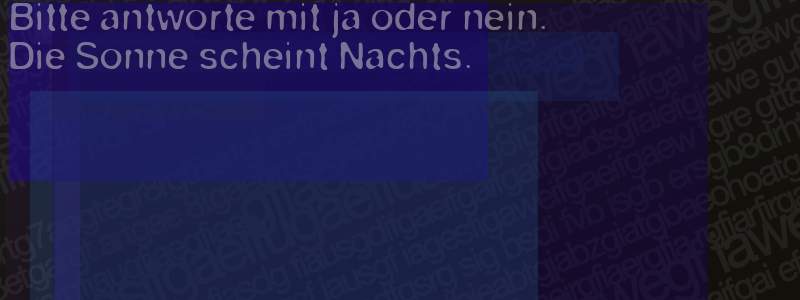 Die Visuelle Bestätigung hilft dabei automatische Spambots und Scripte von den Diensten dieses Forums abzuhalten. Derartige Scripte sind normalerweise nicht in der Lage den untenstehenden Code zu erkennen. Bitte geben Sie also in das untenstehende Feld die Buchstaben und Zahlen ein, die Sie in dem Bild erkennen können oder beantworten Sie die angezeigte Frage.