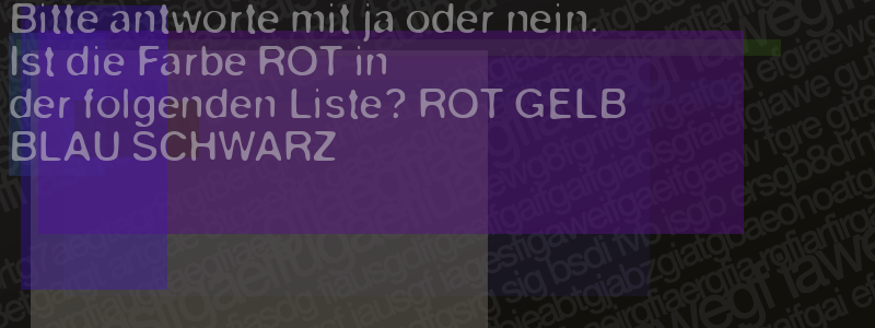 Die Visuelle Bestätigung hilft dabei automatische Spambots und Scripte von den Diensten dieses Forums abzuhalten. Derartige Scripte sind normalerweise nicht in der Lage den untenstehenden Code zu erkennen. Bitte geben Sie also in das untenstehende Feld die Buchstaben und Zahlen ein, die Sie in dem Bild erkennen können oder beantworten Sie die angezeigte Frage.