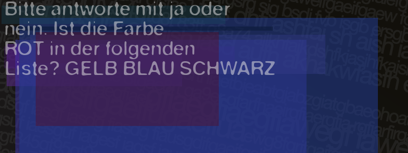 Die Visuelle Bestätigung hilft dabei automatische Spambots und Scripte von den Diensten dieses Forums abzuhalten. Derartige Scripte sind normalerweise nicht in der Lage den untenstehenden Code zu erkennen. Bitte geben Sie also in das untenstehende Feld die Buchstaben und Zahlen ein, die Sie in dem Bild erkennen können oder beantworten Sie die angezeigte Frage.