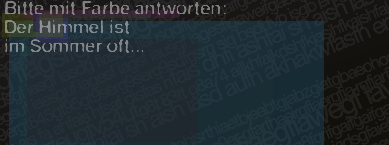 Die Visuelle Bestätigung hilft dabei automatische Spambots und Scripte von den Diensten dieses Forums abzuhalten. Derartige Scripte sind normalerweise nicht in der Lage den untenstehenden Code zu erkennen. Bitte geben Sie also in das untenstehende Feld die Buchstaben und Zahlen ein, die Sie in dem Bild erkennen können oder beantworten Sie die angezeigte Frage.