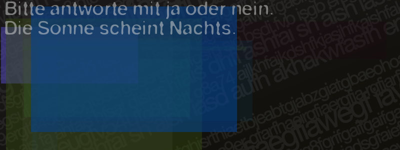Die Visuelle Bestätigung hilft dabei automatische Spambots und Scripte von den Diensten dieses Forums abzuhalten. Derartige Scripte sind normalerweise nicht in der Lage den untenstehenden Code zu erkennen. Bitte geben Sie also in das untenstehende Feld die Buchstaben und Zahlen ein, die Sie in dem Bild erkennen können oder beantworten Sie die angezeigte Frage.