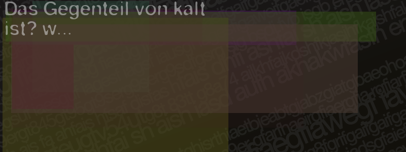 Die Visuelle Bestätigung hilft dabei automatische Spambots und Scripte von den Diensten dieses Forums abzuhalten. Derartige Scripte sind normalerweise nicht in der Lage den untenstehenden Code zu erkennen. Bitte geben Sie also in das untenstehende Feld die Buchstaben und Zahlen ein, die Sie in dem Bild erkennen können oder beantworten Sie die angezeigte Frage.