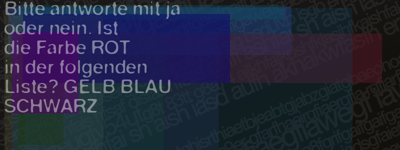 Die Visuelle Bestätigung hilft dabei automatische Spambots und Scripte von den Diensten dieses Forums abzuhalten. Derartige Scripte sind normalerweise nicht in der Lage den untenstehenden Code zu erkennen. Bitte geben Sie also in das untenstehende Feld die Buchstaben und Zahlen ein, die Sie in dem Bild erkennen können oder beantworten Sie die angezeigte Frage.