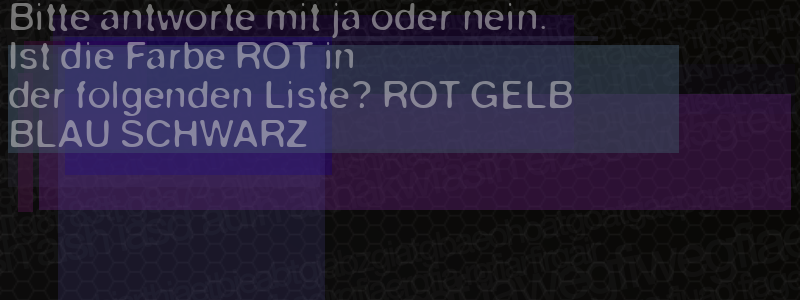 Die Visuelle Bestätigung hilft dabei automatische Spambots und Scripte von den Diensten dieses Forums abzuhalten. Derartige Scripte sind normalerweise nicht in der Lage den untenstehenden Code zu erkennen. Bitte geben Sie also in das untenstehende Feld die Buchstaben und Zahlen ein, die Sie in dem Bild erkennen können oder beantworten Sie die angezeigte Frage.