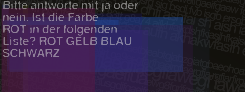 Die Visuelle Bestätigung hilft dabei automatische Spambots und Scripte von den Diensten dieses Forums abzuhalten. Derartige Scripte sind normalerweise nicht in der Lage den untenstehenden Code zu erkennen. Bitte geben Sie also in das untenstehende Feld die Buchstaben und Zahlen ein, die Sie in dem Bild erkennen können oder beantworten Sie die angezeigte Frage.