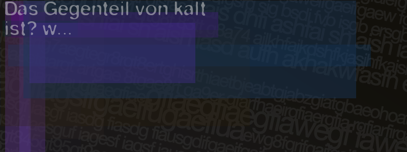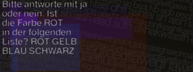 Die Visuelle Bestätigung hilft dabei automatische Spambots und Scripte von den Diensten dieses Forums abzuhalten. Derartige Scripte sind normalerweise nicht in der Lage den untenstehenden Code zu erkennen. Bitte geben Sie also in das untenstehende Feld die Buchstaben und Zahlen ein, die Sie in dem Bild erkennen können oder beantworten Sie die angezeigte Frage.