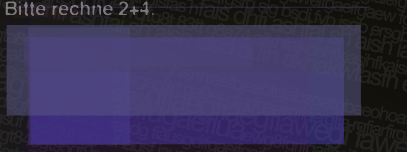 Die Visuelle Bestätigung hilft dabei automatische Spambots und Scripte von den Diensten dieses Forums abzuhalten. Derartige Scripte sind normalerweise nicht in der Lage den untenstehenden Code zu erkennen. Bitte geben Sie also in das untenstehende Feld die Buchstaben und Zahlen ein, die Sie in dem Bild erkennen können oder beantworten Sie die angezeigte Frage.