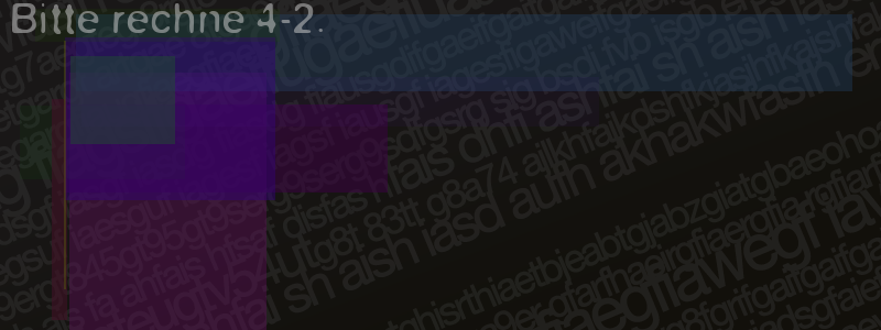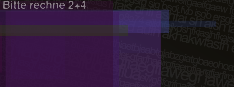 Die Visuelle Bestätigung hilft dabei automatische Spambots und Scripte von den Diensten dieses Forums abzuhalten. Derartige Scripte sind normalerweise nicht in der Lage den untenstehenden Code zu erkennen. Bitte geben Sie also in das untenstehende Feld die Buchstaben und Zahlen ein, die Sie in dem Bild erkennen können oder beantworten Sie die angezeigte Frage.