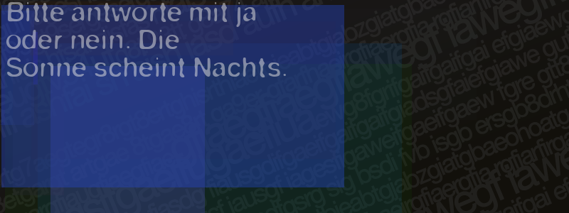 Die Visuelle Bestätigung hilft dabei automatische Spambots und Scripte von den Diensten dieses Forums abzuhalten. Derartige Scripte sind normalerweise nicht in der Lage den untenstehenden Code zu erkennen. Bitte geben Sie also in das untenstehende Feld die Buchstaben und Zahlen ein, die Sie in dem Bild erkennen können oder beantworten Sie die angezeigte Frage.