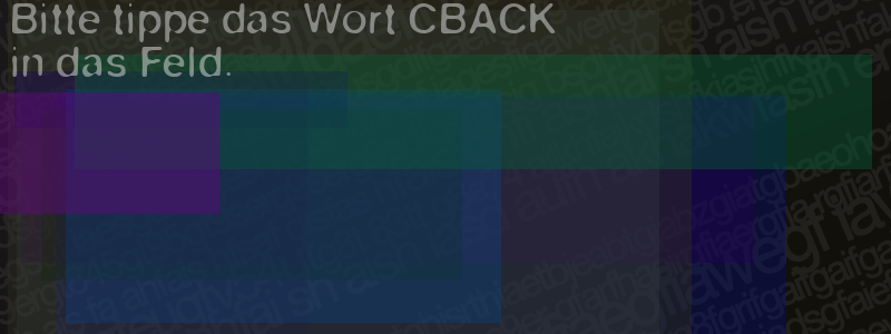 Die Visuelle Bestätigung hilft dabei automatische Spambots und Scripte von den Diensten dieses Forums abzuhalten. Derartige Scripte sind normalerweise nicht in der Lage den untenstehenden Code zu erkennen. Bitte geben Sie also in das untenstehende Feld die Buchstaben und Zahlen ein, die Sie in dem Bild erkennen können oder beantworten Sie die angezeigte Frage.