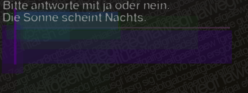 Die Visuelle Bestätigung hilft dabei automatische Spambots und Scripte von den Diensten dieses Forums abzuhalten. Derartige Scripte sind normalerweise nicht in der Lage den untenstehenden Code zu erkennen. Bitte geben Sie also in das untenstehende Feld die Buchstaben und Zahlen ein, die Sie in dem Bild erkennen können oder beantworten Sie die angezeigte Frage.