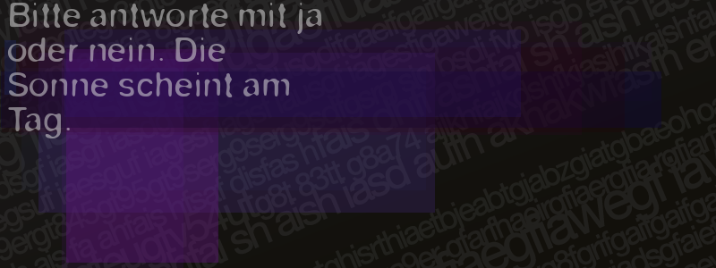 Die Visuelle Bestätigung hilft dabei automatische Spambots und Scripte von den Diensten dieses Forums abzuhalten. Derartige Scripte sind normalerweise nicht in der Lage den untenstehenden Code zu erkennen. Bitte geben Sie also in das untenstehende Feld die Buchstaben und Zahlen ein, die Sie in dem Bild erkennen können oder beantworten Sie die angezeigte Frage.