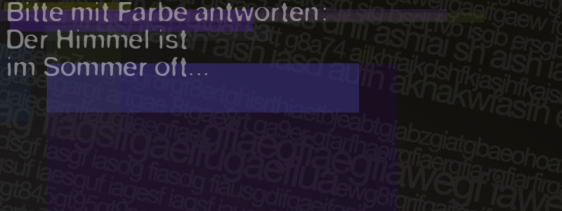 Die Visuelle Bestätigung hilft dabei automatische Spambots und Scripte von den Diensten dieses Forums abzuhalten. Derartige Scripte sind normalerweise nicht in der Lage den untenstehenden Code zu erkennen. Bitte geben Sie also in das untenstehende Feld die Buchstaben und Zahlen ein, die Sie in dem Bild erkennen können oder beantworten Sie die angezeigte Frage.